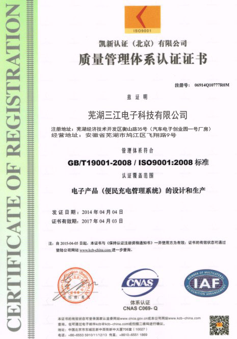 蕪湖三江電子科技有限公司,位于美麗的江城蕪湖,是一家目前國內(nèi)專業(yè)從事智能式自助產(chǎn)品的研發(fā)、生產(chǎn)、銷售及自助產(chǎn)品服務為一體的科技型企業(yè)。主要經(jīng)營:電動車充電站,電動車充電站配件,小區(qū)充電站,便民充電站、投幣充電站、手機支付充電站、刷卡充電站、智能充電站、智能充電系統(tǒng)等。歡迎大家來公司參觀考察!公司秉承“顧客至上,銳意進取”的經(jīng)營理念,堅持“客戶至上”的原則為廣大客戶提供優(yōu)質(zhì)的服務。歡迎廣大新老客戶惠顧!